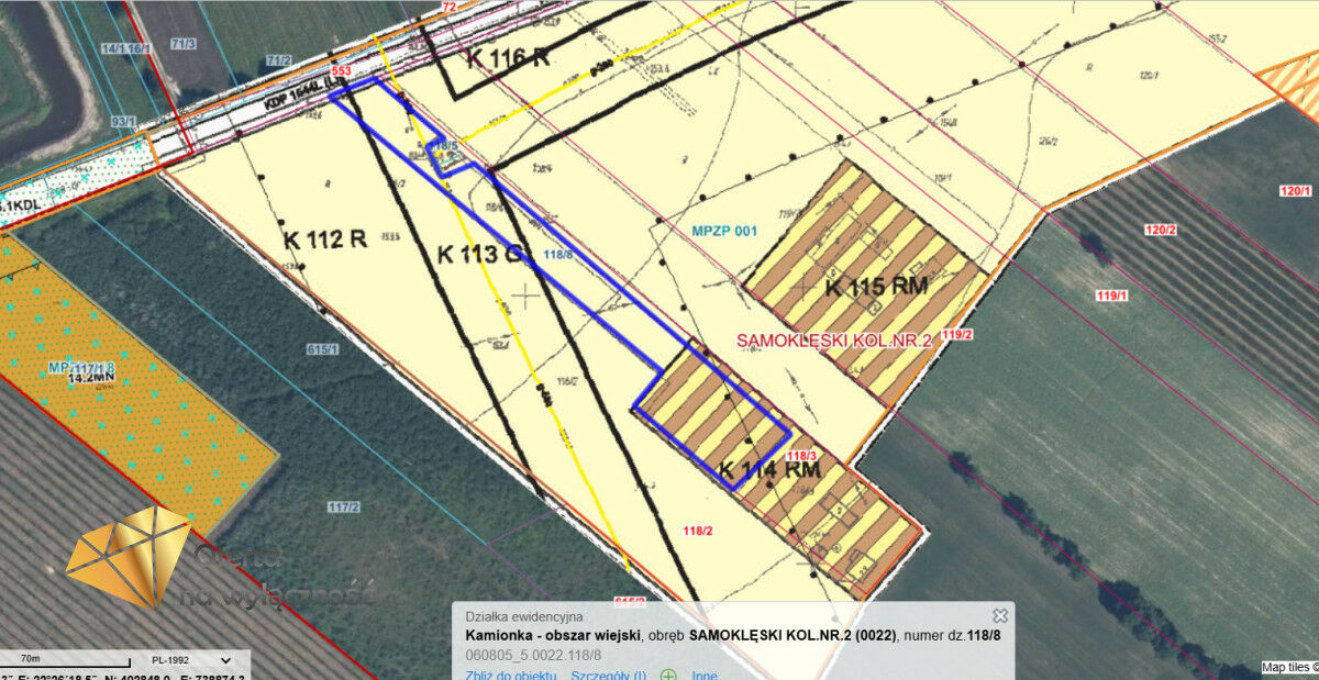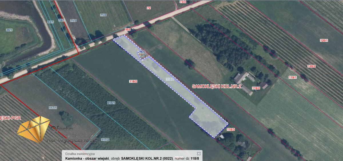 Oferta dostępna wyłącznie za pośrednictwem Franczewska Nieruchomości.Nieruchomość gruntowa położona w gminie Kamionka, powiat lubartowski w miejscowości Samoklęski Kolonia Druga.